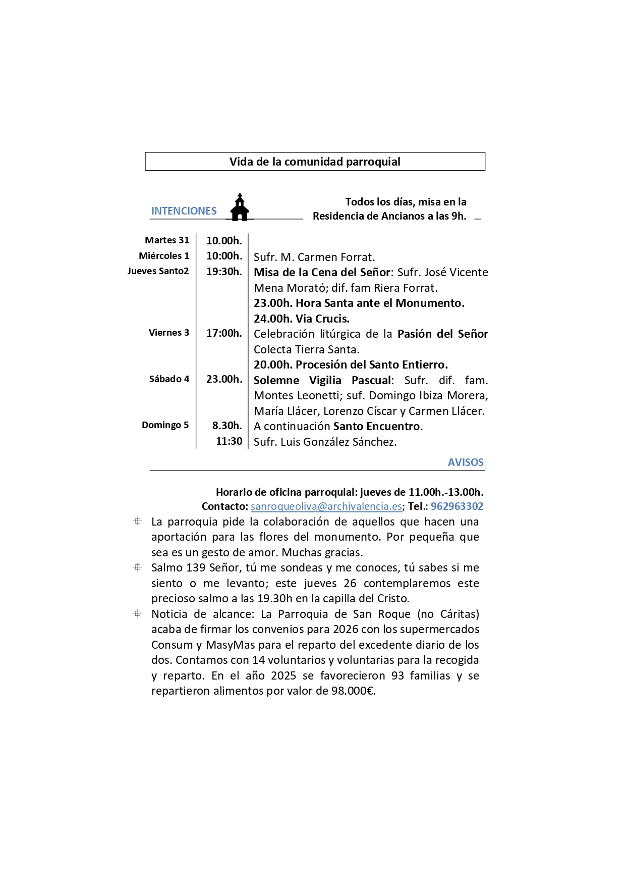 Todos los derechos reservados- Parròquia Sant Roc - Turisme Oliva
